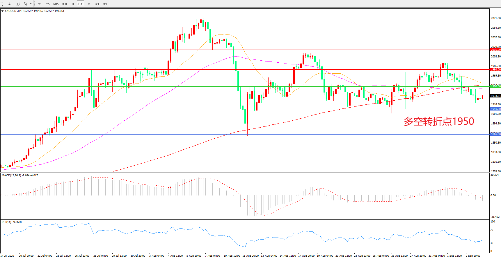 现货黄金XAU/USD    4小时图