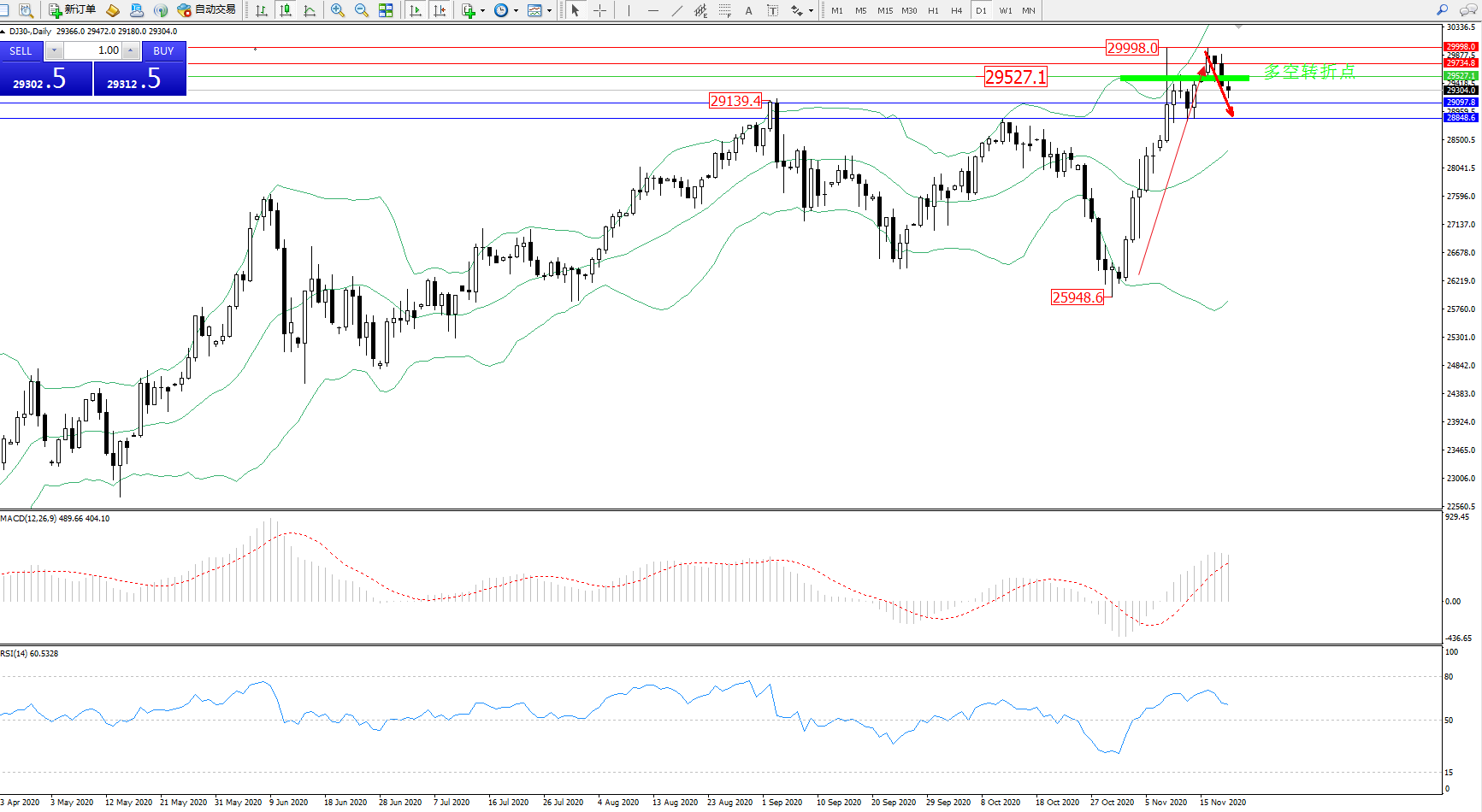 多空转折点:29527