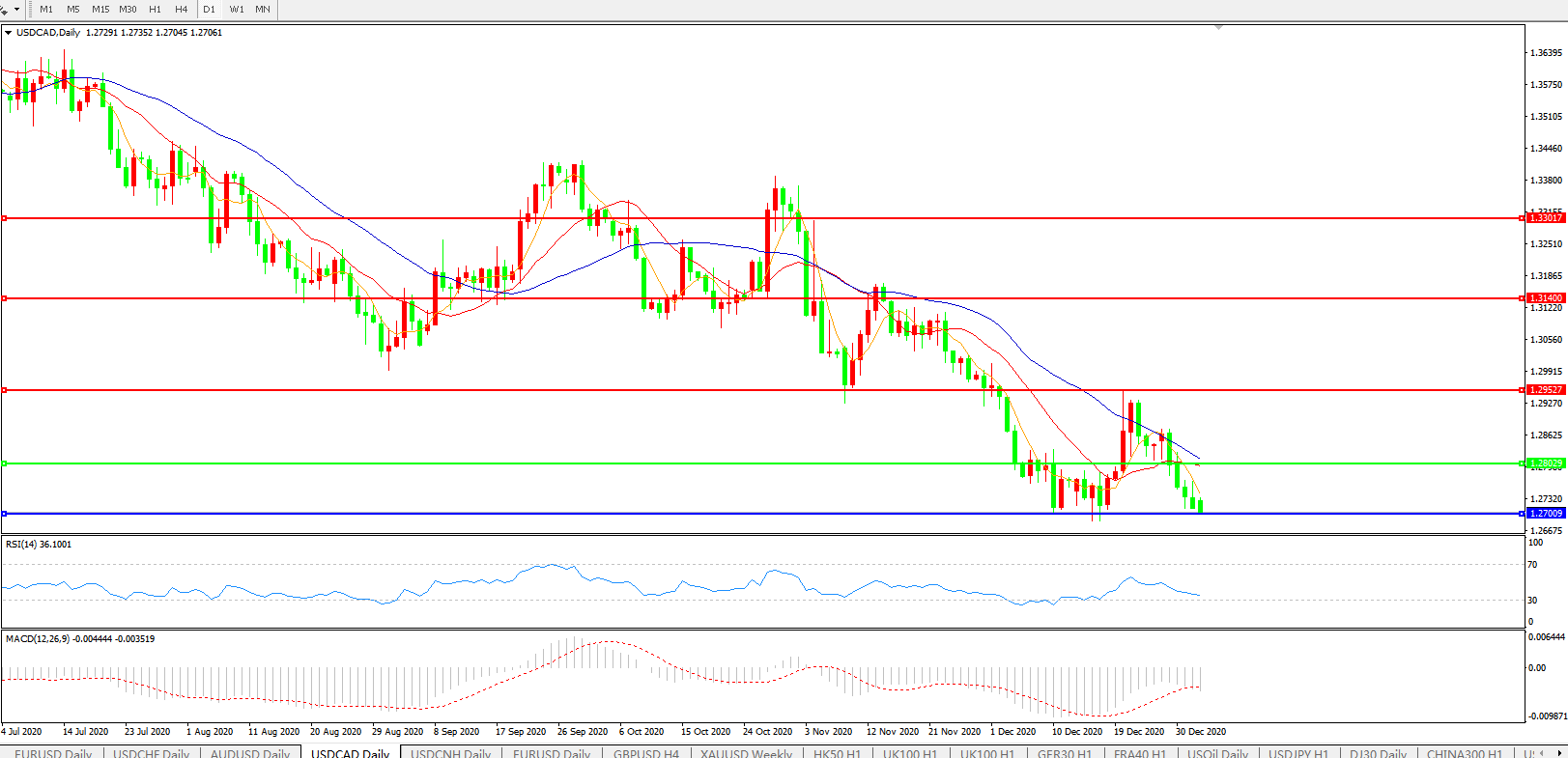 美元兑加元USDCAD    日线图: