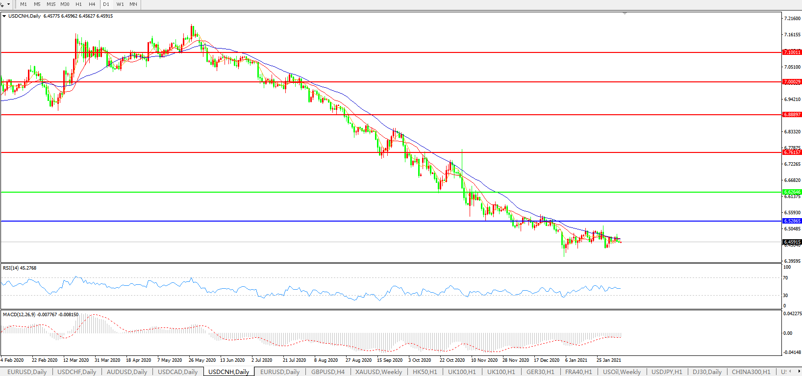备选策略: 在6.6265之上,看涨,目标价位为6.7615,然后为6.8889。