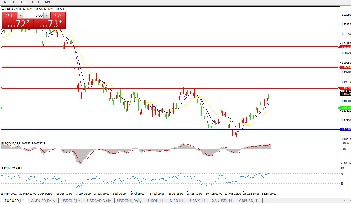 交易策略:1.1800上方看涨,目标1.1900、1.2000