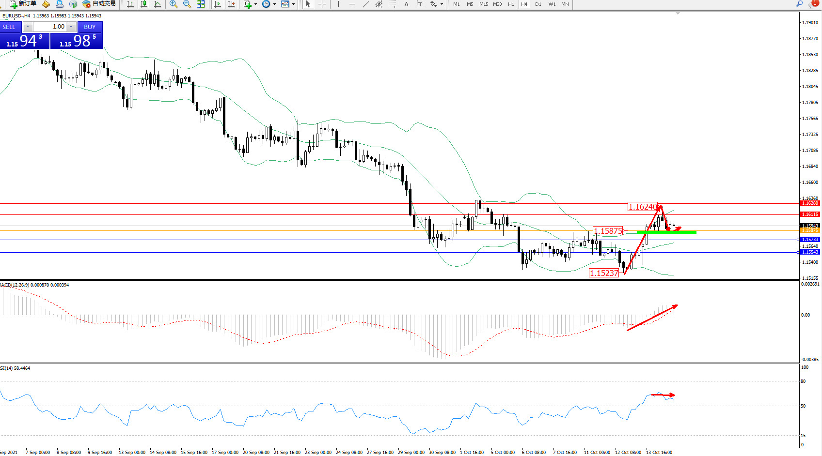 交易策略:1.15875上方看涨,目标1.16115、1.16280
