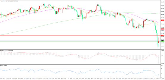 上周五(11月26日),对疫情的担忧重新主宰市场,感恩节假期流动性变差更是放大了市场波动,在世界卫生组织宣布南非又有新的变异株出现后,风险资产大幅跳水,美国WTI原油狂泻近13%,收报68.15美元/桶。