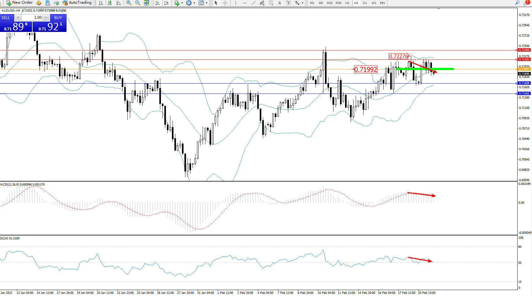 交易策略:0.71992下方看跌,目标0.71688、0.71465