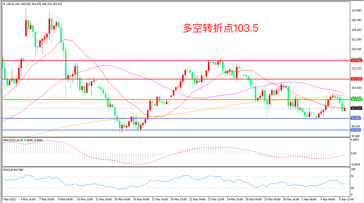 交易策略:在103.50之下看涨,目标109.50           115.00