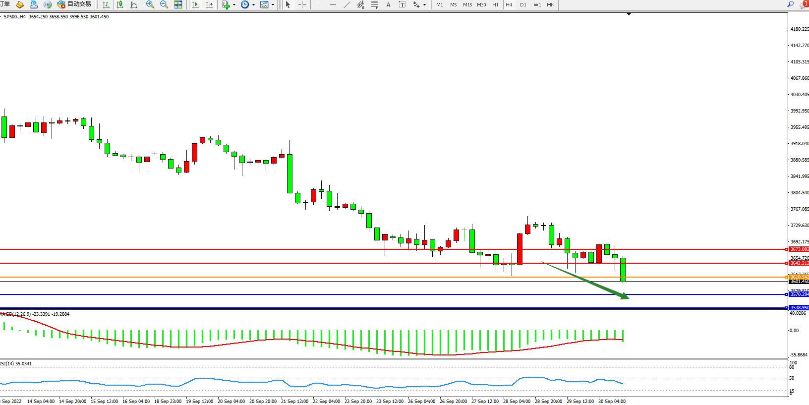 标普SP500——4小时K线图显示: