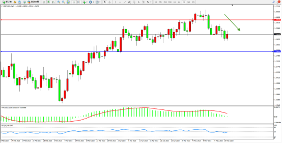 英镑兑美元上周震荡小幅回落,主要受累于美元走强,英国通胀居高不下支持英镑。英国3月份通胀率再超预期,出乎意料的保持在10%以上。尽管央行已经连续12次加息,但英国目前仍在经历工资-物价螺旋上升。